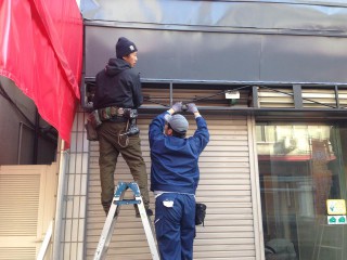 オーニングテント工事完了です。そして電気屋さんが頑張って …