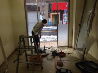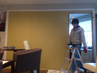 間仕切り壁造作及びクロス工事をやっております。昨日から始 …