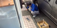 店舗外部の土間タイル工事をやっております!