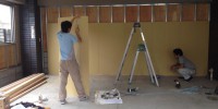 間仕切り壁の造作工事中です。
