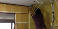 今日は内部の動力配線工事と間仕切り壁の造作工事をやってい …