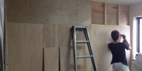 一つの大きな部屋を真ん中に間仕切り壁を設けて二つの部屋にします。今日は造作工事を行っています。