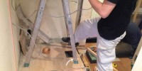 先週末にようやくユニットバスが設置されたので造作工事を進 …