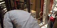 長尺シート貼りとポストの交換をやっています。 既存ポスト …