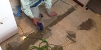 先週末にやった、台所と脱衣室の床の塩ビタイル工事です。こ …