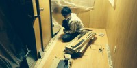 廊下の床の工事をやっています。傷みが激しいのでコンパネから張り替えです。