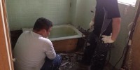 在来浴室からユニットバスに交換するので、既存の解体作業中 …