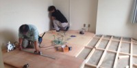 造作工事が終わったので床上げ工事の仕上げ、クッションフロ …