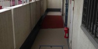 スロープ設置工事 マンションでエレベーターホールと廊下に …