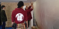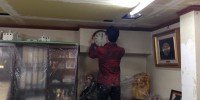 池袋の現場の天井ボード復旧が終わり、 クロスを貼り始めて …