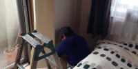 高円寺の賃貸マンションにて 外からの雨漏りで壁が腐ってい …