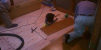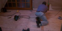 今日は仕上げのフローリングを貼っています。 他にもクロス …