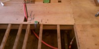 本日は水回りの配管工事をしています。 給湯管、給水管、排 …